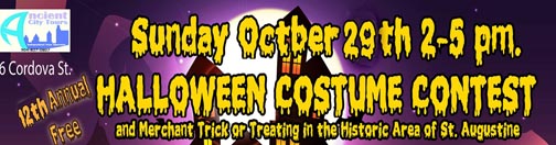SAINT AUGUSTINE – The 12th annual Halloween Costume Contest continues from 2 to 5 p.m. Sunday, Oct. 29 and includes Merchant Trick or Treating in the Historic Area of the old city.