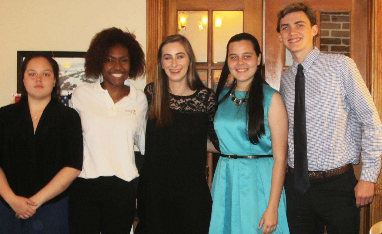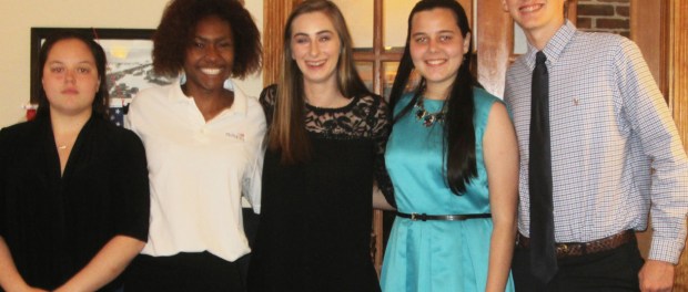 Scholarship recipients at the Pilot Club of St. Augustine recent dinner were, from left: Kaylee Folckemer, Ileisha Smith, Jordan Hayes, Myra DeRenzo, who presented here 4-H talk; and Grant Cioffi.