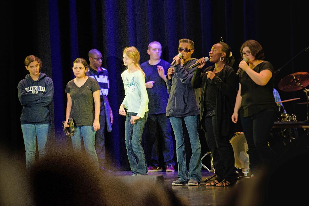 While the composition of the Outta Sight group varies each school year, Carpenter said this year’s group is composed of seven girls, two of whom are in middle school and the rest are high school. All are full time students at the Florida School for the Blind and Deaf located in St. Augustine. The group includes Diamond Caldwell on drums and vocals, Kaitlyn Deverson on guitar, bass and vocals, Meli Hatcher on the keyboard, and vocalists Camryn Johnson, Madison Wardell, Z’Leah Liburd, Brianna Cruz.