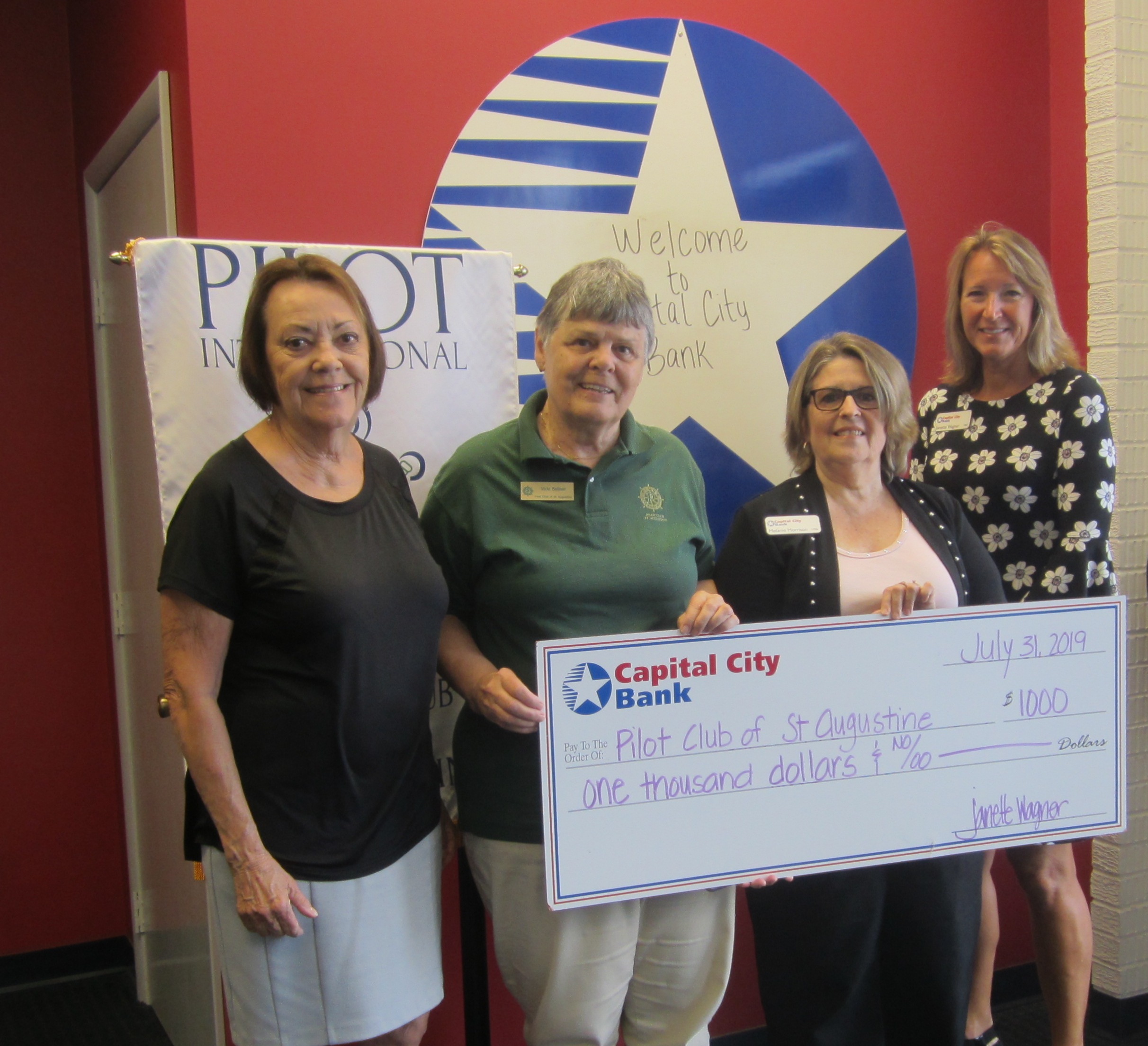 SAINT AUGUSTINE – The Pilot Club of St. Augustine has received a $1,000 grant from Capital City Bank Group Foundation for the club’s work in the community.