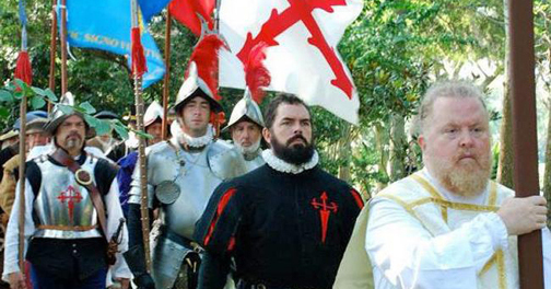 SAINT AUGUSTINE – The 454th anniversary of the founding of this old city will be celebrated Sept. with a day-long celebration on the grounds of the Mission of Nombre de Dios and Fountain of Youth Archaeological Park. The day begins with a 10 a.m. landing of Menendez and his party on the Mission grounds. Cannon and musket salutes echoing from the FOY park will mark the historic re-enactment. Participants in the landing will be led by the Historic Florida Militia’s Men of Menendez and the St. Augustine Maritime Heritage Foundation Chalupa.