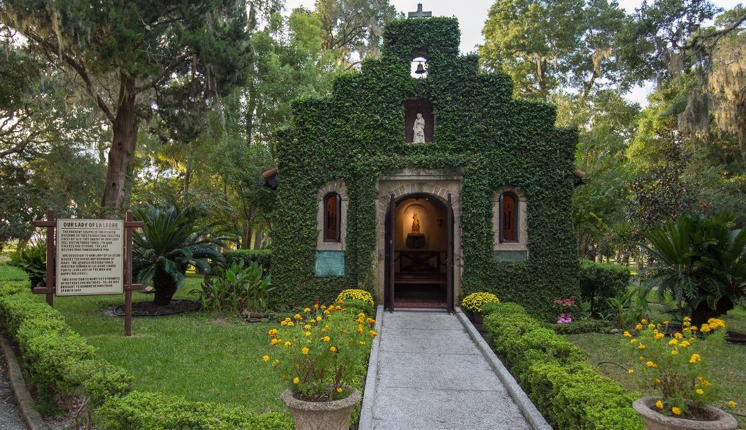 SAINT AUGUSTINE – For many years, the Shrine of Our Lady of La Leche at Mission Nombre de Dios in St. Augustine has been a renowned landmark for pilgrims who visit from all over the world. It is America’s oldest Marian Shrine, and Oct. 11 Bishop Felipe J. Estévez made a surprise announcement that Our Lady of La Leche Shrine has been elevated to a National Shrine by the U.S. Conference of Catholic Bishops (USCCB).