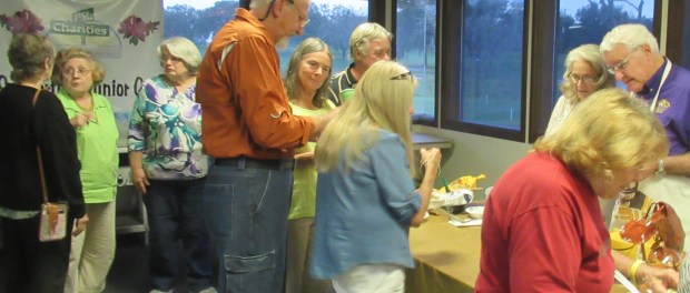 People lined up to enjoy the work of cooks from the Sunrise Rotary Club of Palatka during the kick-off at the Palatka Municipal Golf Course clubhouse.