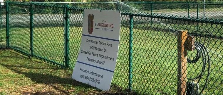 SAINT AUGUSTINE – The city of St. Augustine announces that due to the pouring of a concrete slab inside the fenced area at Pomar Dog Park, 1600 Masters Drive, the park will be closed from approximately Monday, July 6 through Thursday, July 9, weather permitting.